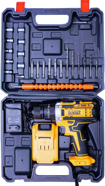 - Доп. опции шуруповерта: быстрозажимное крепление; дополнительный аккумулятор; зарядное устройство
